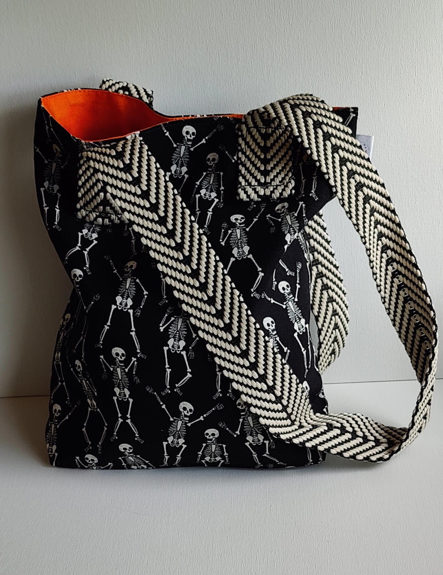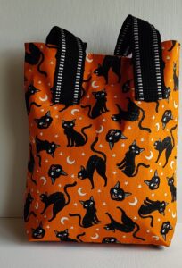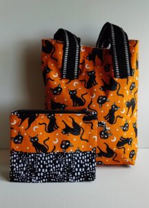 Small Simple Totes measure approximately 11″ tall, 10″ wide, and have a 2 1/2″ box bottom. Handles have a 12″ drop, closure is magnetic.